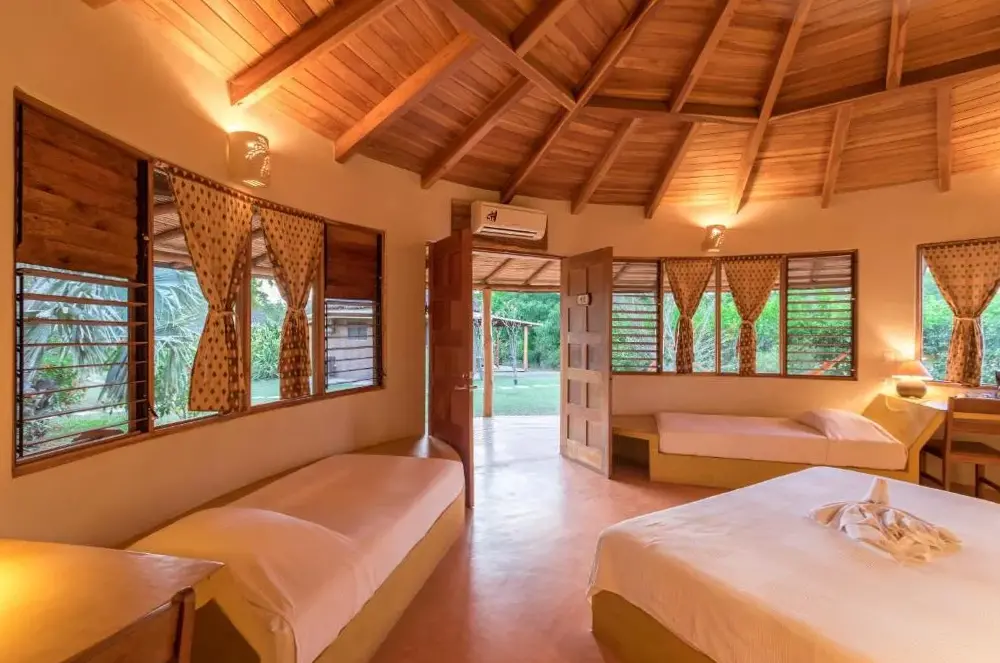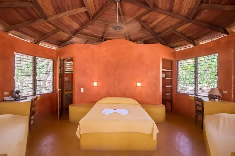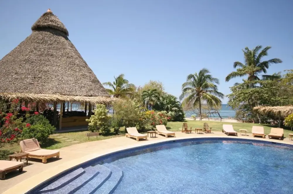 Hotel Playa Negra ligger direkte på stranden i det maleriske Playa Negra ved kysten af Costa Rica og tilbyder et autentisk strandoplevelse med havet som nærmeste nabo. Her kan du nyde den unikke atmosfære, hvor man vågner op til lydene fra bølgerne og har adgang til sandstranden lige udenfor døren. Området er ideelt for både surfere og dem, der ønsker at slappe helt af ved vandet – omgivelserne lever op til begge typer naturoplevelser. Med kun 50 meter til Playa de Negros giver placeringen hurtig adgang til badning eller solbadning under tropens sol. For dem, der søger mere aktivitet, findes flere smukke strande inden for få kilometers radius, såsom Junquillal Beach (2,4 km) eller Avellanas Beach (3 km). Naturinteresserede vil værdsætte nærheden til Parque Nacional Marino Las Baulas (8 km), hvor man kan opleve marin liv i dens rene vandmiljøer. Derudover ligger Café Colibrí (11 km) og Cafetería La Norma (9 km) tæt på for en god kop kaffe eller frisk mad efter en dag udendørs. Hotellet rummer to poolområder samt faciliteter som gratis parkering og transporttjenester fra lokale lufthavne som Aeropuerto Internacional Daniel Oduber Quirós (52 km) eller Aeropuerto de Tamarinda (13 km). Indkvarteringen inkluderer også bar-, restaurantfaciliteter samt mulighed for at brygge egen te eller kaffe i alle værelser. Alle rum er ikke-røgere, hvilket sikrer en behagelig opholdsatmosfære for gæsterne.